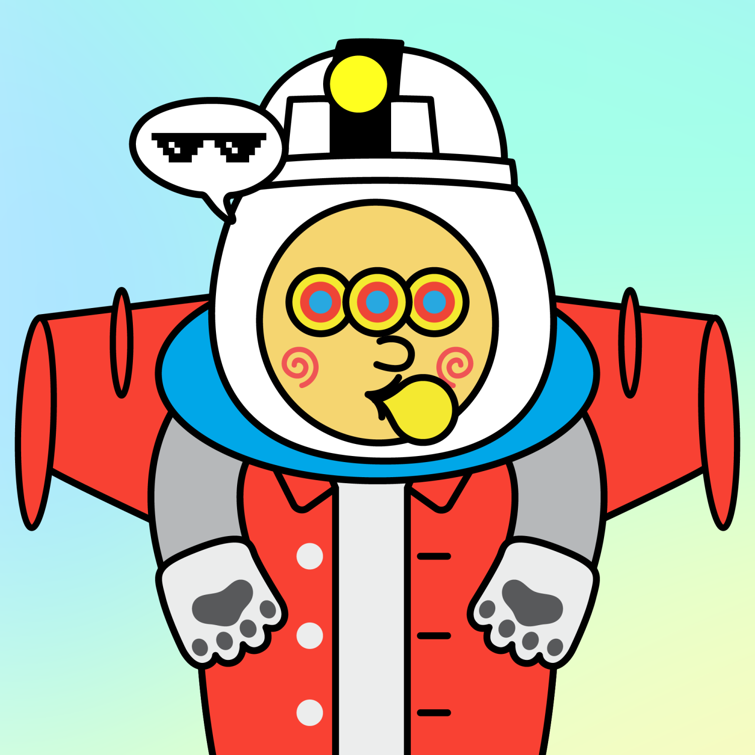 ArmsGrey31.22%BackgroundRainforest4.70%CheekSpiral16.18%DialogueThug3.31%EyesTriple Hypno1.53%Face ColourLemon23.14%Head MiddleSaucer0.23%Head TopLighthouse0.81%Left HandWhite Paw1.74%MouthBubble Gum2.01%NoseButton10.78%Right HandWhite Paw1.74%ShirtRed Shirt1.47%Special ToolRed Kite1.04%TribeAngel19.99%