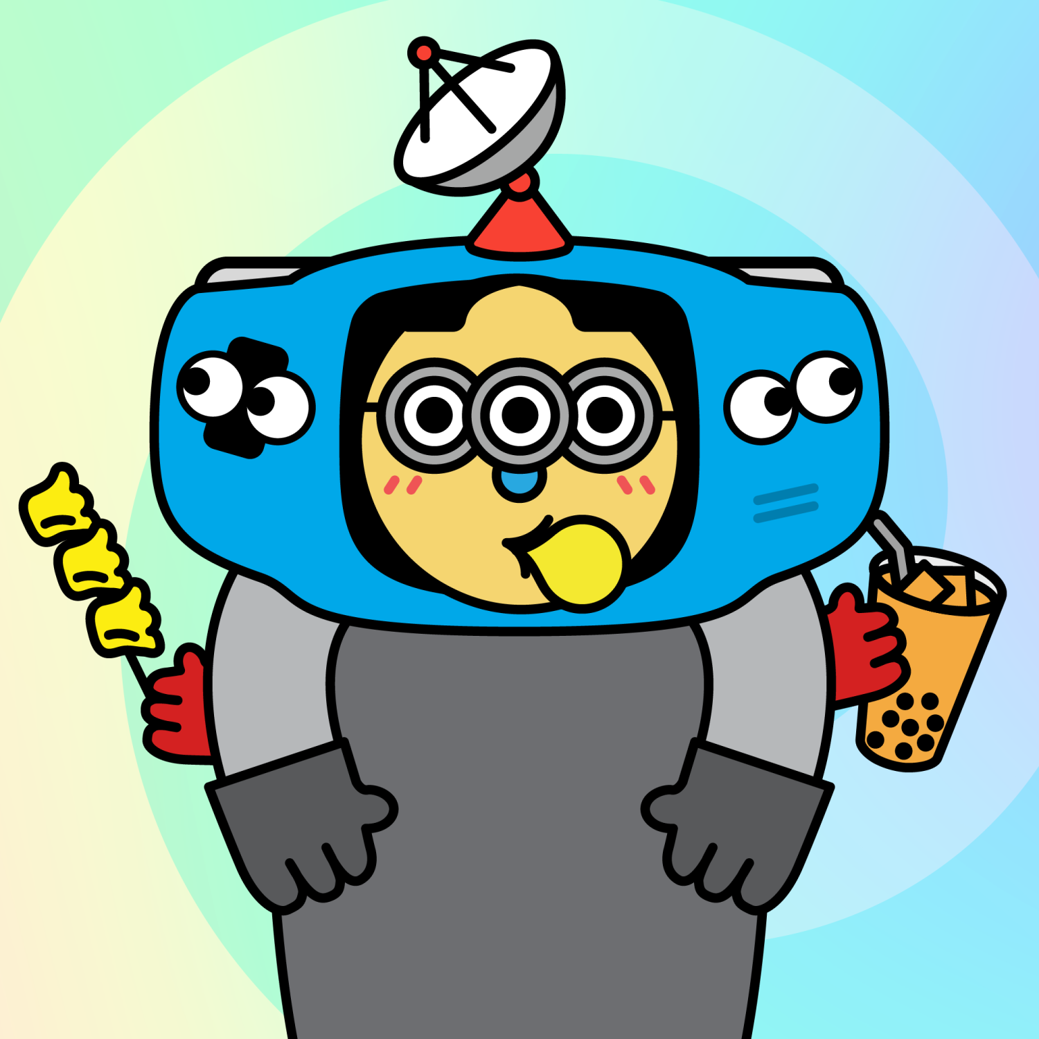 ArmsGrey31.22%BackgroundOcean3.29%CheekBlush3.68%EyesTriple Goggles1.40%Face ColourLemon23.14%HairCentre Parting10.07%Head MiddleBlue Gamer0.41%Head TopSatellite1.07%Left HandGrey28.85%MouthBubble Gum2.01%NoseBlue3.76%Right HandGrey28.85%ShirtPlain Grey6.38%Special ToolBubble Tea0.61%TribeConnector20.00%