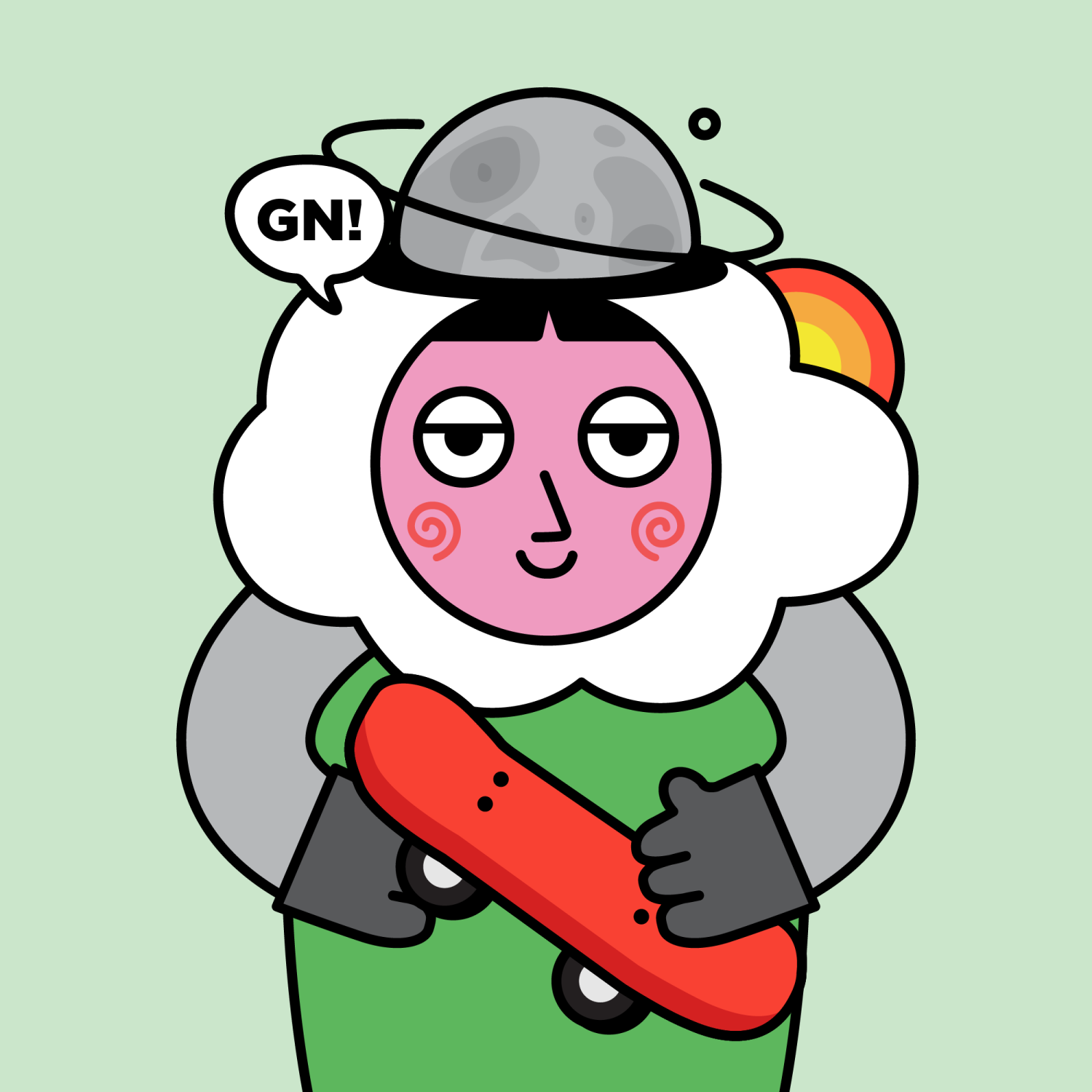 ArmsGrey31.22%BackgroundNature11.30%CheekSpiral16.18%DialogueGN!10.28%EyesJudgemental4.78%Face ColourStrawberry46.38%HairThick Fringe9.57%Head MiddleRainbow Cloud1.01%Head TopMetal1.36%Left HandGrey28.85%MouthSmile21.06%NoseSharp23.13%PropSkateboard0.45%Right HandGrey28.85%ShirtPlain Green9.09%TribeDreamer19.99%