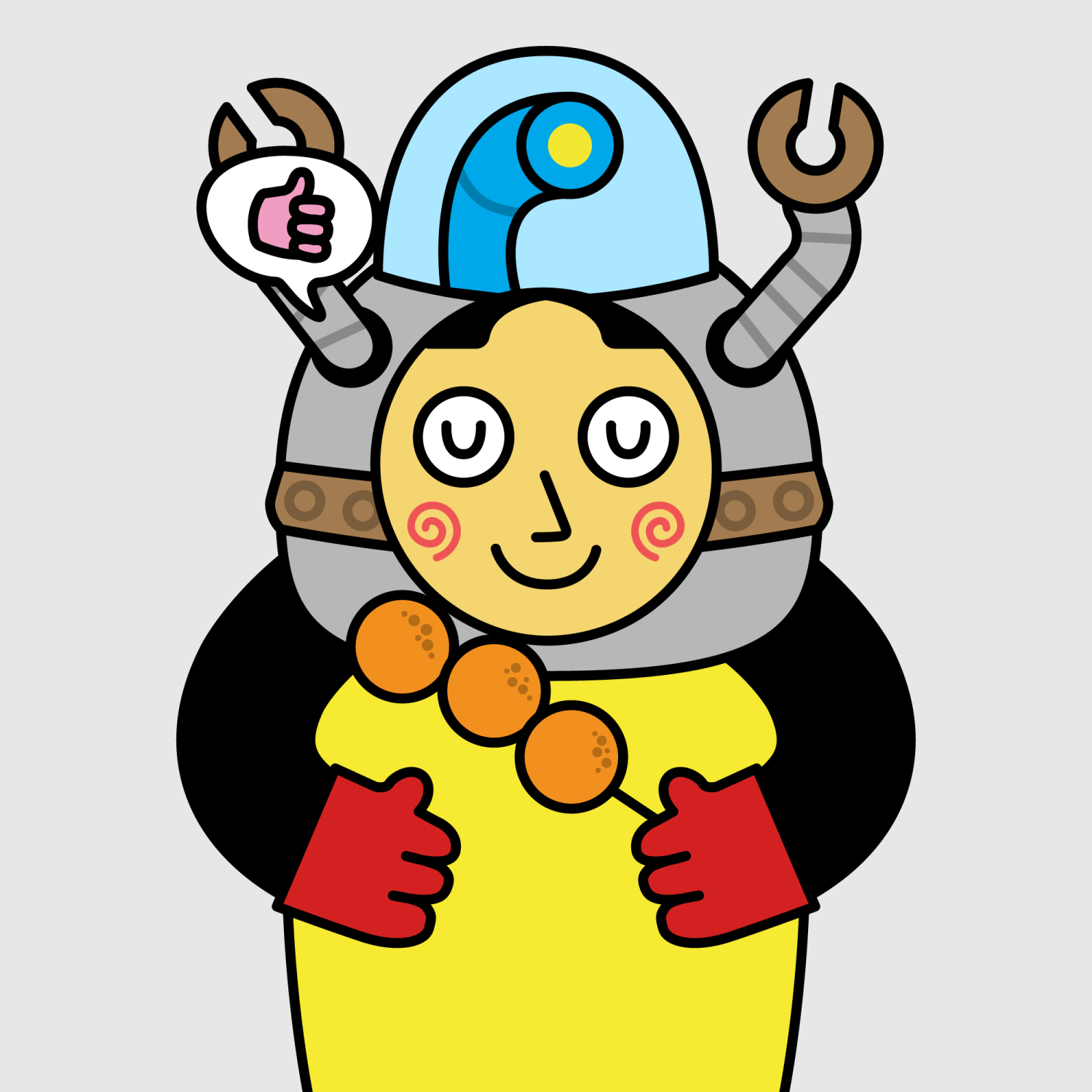 ArmsBlack33.28%BackgroundNeutral10.23%CheekSpiral16.18%DialogueThumbs Up11.09%EyesSleepy5.84%Face ColourLemon23.14%HairCentre Parting10.07%Head MiddleBronze Robot1.55%Head TopBlue Periscope1.96%Left HandRed32.25%MouthBig Smile19.64%NoseSharp23.13%PropFishball0.75%Right HandRed32.25%ShirtPlain Yellow7.90%TribeBuilder19.99%