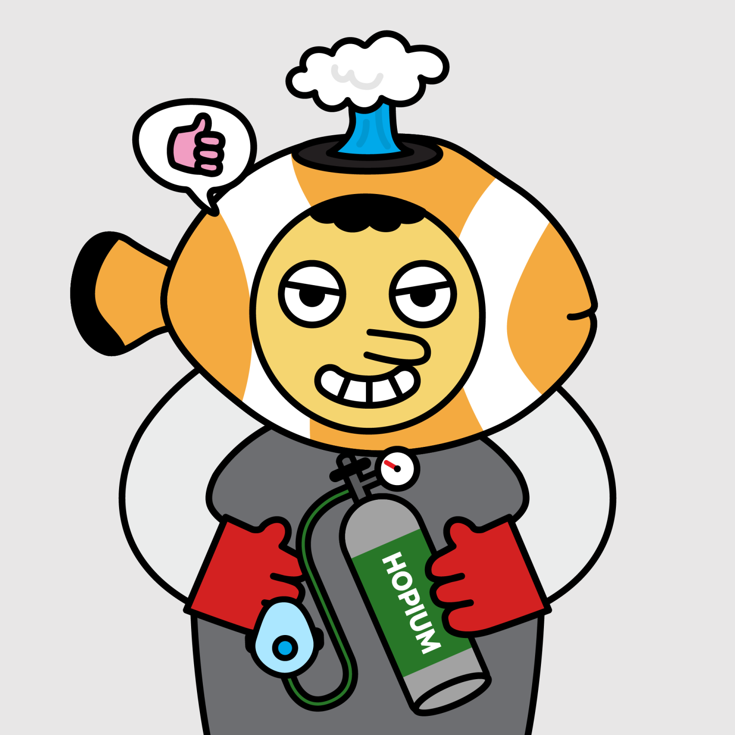 ArmsWhite33.38%BackgroundNeutral10.23%DialogueThumbs Up11.09%EyesGrumpy5.74%Face ColourLemon23.14%HairCloud Fringe9.72%Head MiddleOrange Clownfish0.63%Head TopSmoke1.37%Left HandRed32.25%MouthTeethy10.18%NoseLong11.53%PropHopium Canister0.69%Right HandRed32.25%ShirtPlain Grey6.38%TribeNeo-Capitalist20.02%