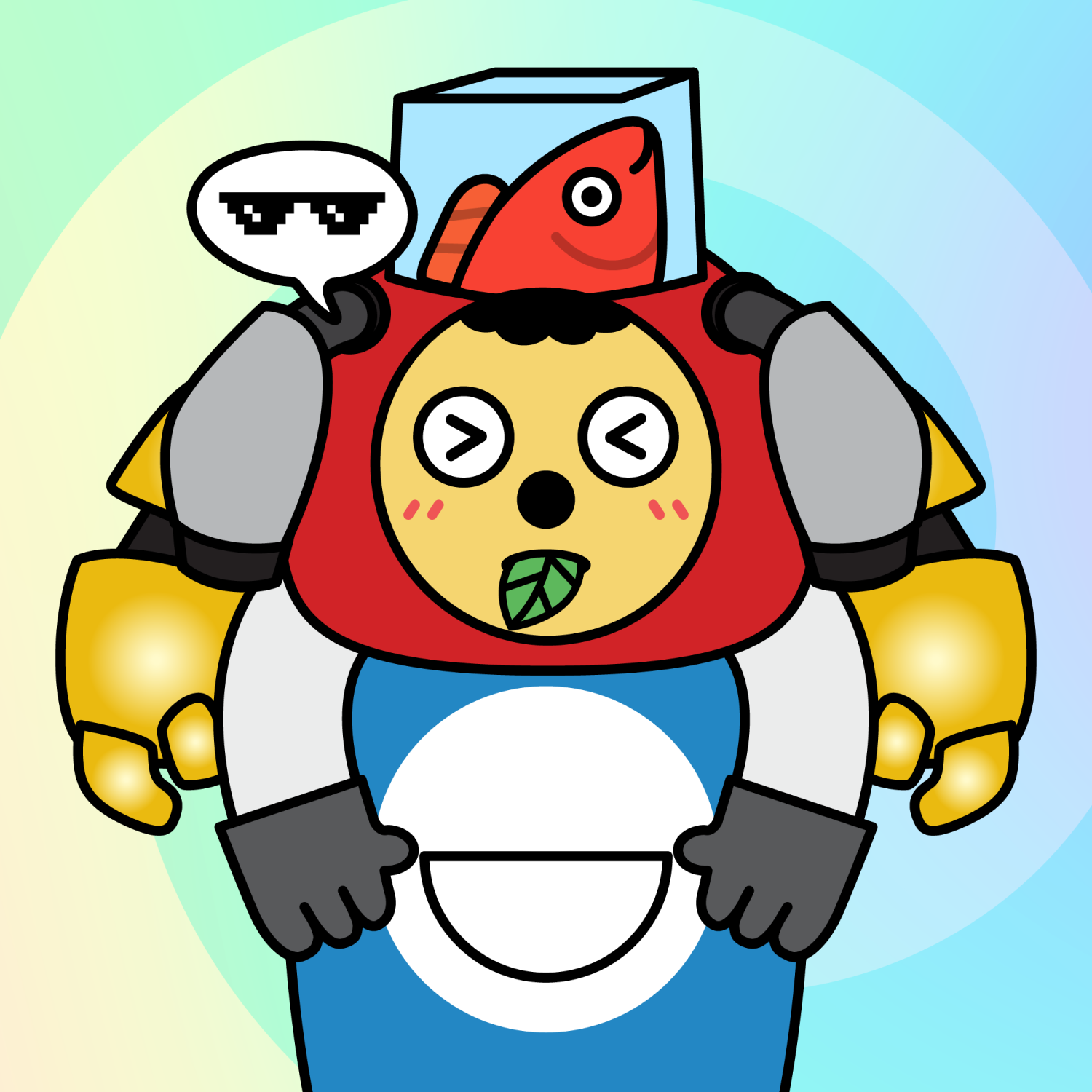 ArmsWhite33.38%BackgroundOcean3.29%CheekBlush3.68%DialogueThug3.31%EyesScrunched5.58%Face ColourLemon23.14%HairCloud Fringe9.72%Head MiddleRed Device0.26%Head TopFish2.15%Left HandGrey28.85%MouthLeaf2.01%NoseBlack3.70%Right HandGrey28.85%ShirtBlue Cat0.39%Special ToolGold Robot1.05%TribeBuilder19.99%