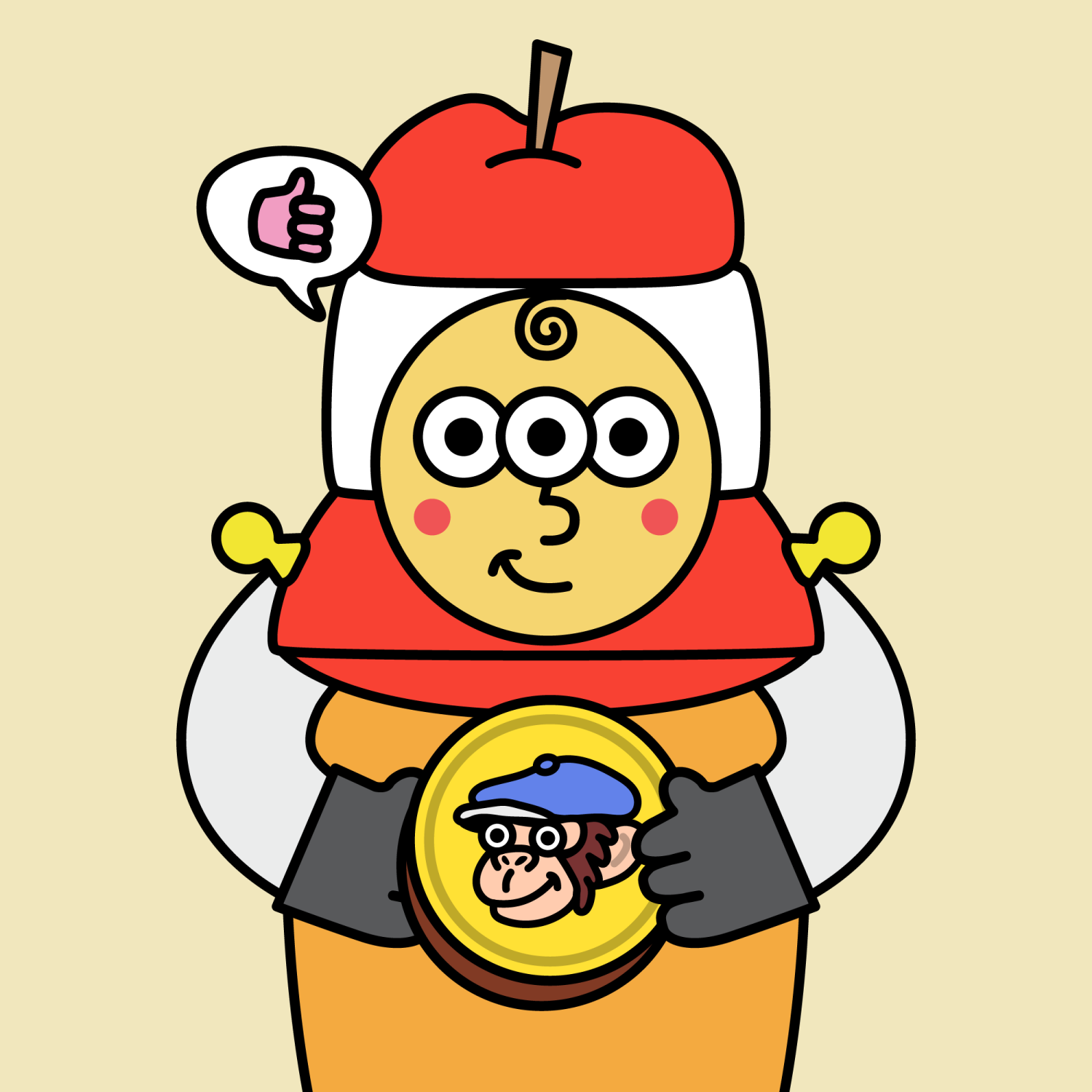 ArmsWhite33.38%BackgroundEarth11.50%CheekRosy23.73%DialogueThumbs Up11.09%EyesThree15.53%Face ColourLemon23.14%HairSpiral Fringe9.51%Head MiddleRed UFO0.81%Head TopApple0.34%Left HandGrey28.85%MouthSmirk19.13%NoseRound21.67%PropGrease Monkey Games0.56%Right HandGrey28.85%ShirtPlain Orange7.35%TribeAngel19.99%