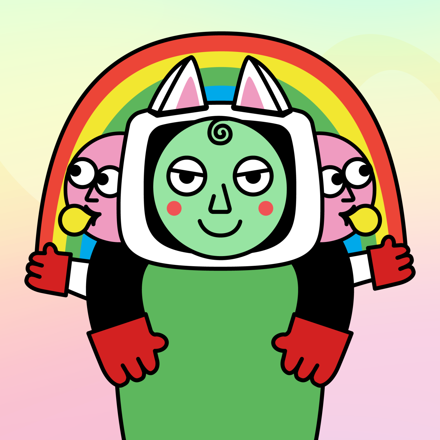 ArmsBlack33.28%BackgroundDusk3.29%CheekRosy23.73%EyesGrumpy5.74%Face ColourAlien3.81%HairSpiral Fringe9.51%Head MiddleChilled1.74%Head TopWhite Cat0.32%Left HandRed32.25%MouthBig Smile19.64%NoseTriangle21.33%Right HandRed32.25%ShirtPlain Green9.09%Special ToolSunrise Rainbow0.34%TribeConnector20.00%