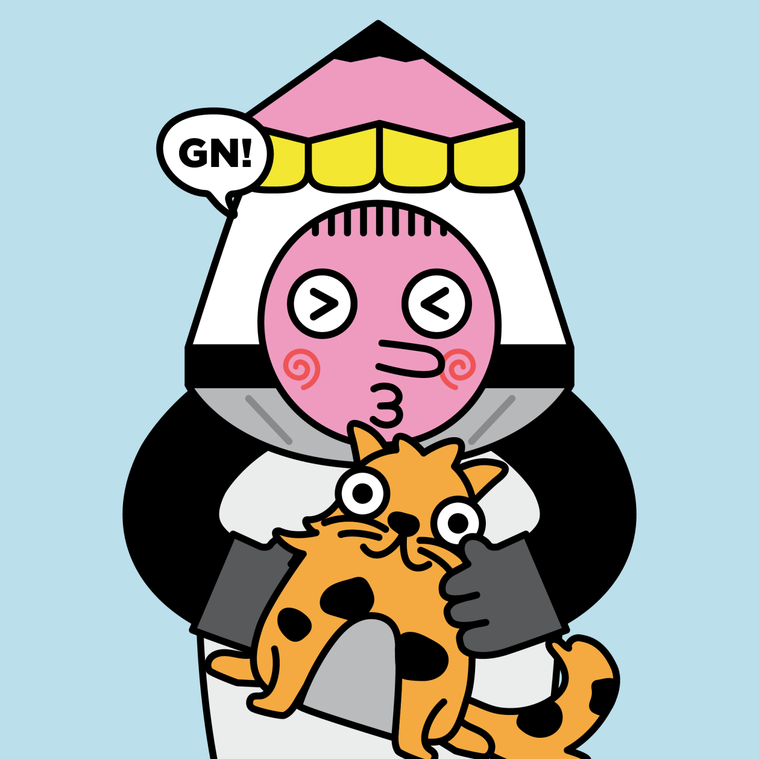ArmsBlack33.28%BackgroundSky13.97%CheekSpiral16.18%DialogueGN!10.28%EyesScrunched5.58%Face ColourStrawberry46.38%HairThin Fringe10.61%Head MiddleGrey Body1.24%Head TopPencil0.46%Left HandGrey28.85%MouthO11.24%NoseLong11.53%PropCryptoKitties Plushie0.32%Right HandGrey28.85%ShirtPlain White6.92%TribeAngel19.99%