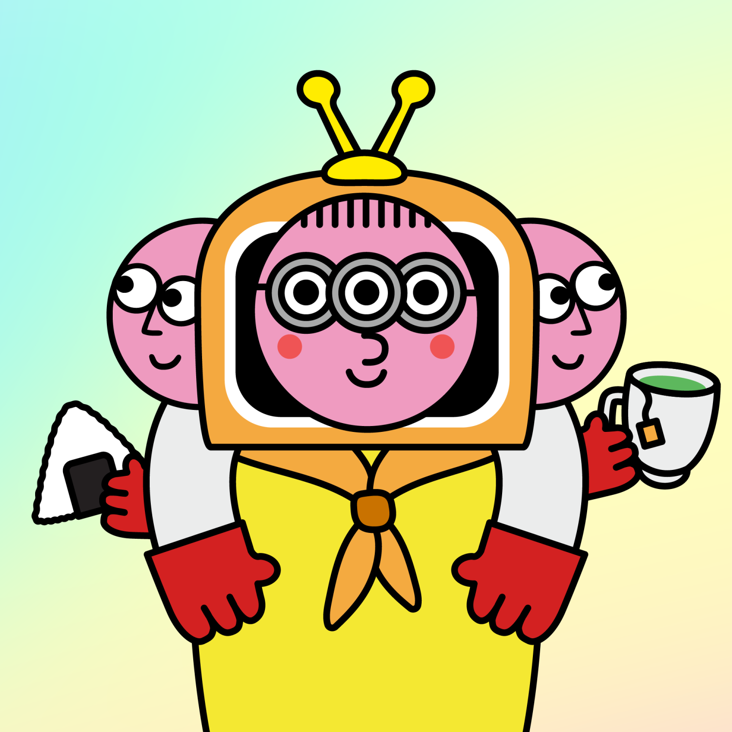 ArmsWhite33.38%BackgroundForest4.58%CheekRosy23.73%EyesTriple Goggles1.40%Face ColourStrawberry46.38%HairThin Fringe10.61%Head MiddleContent1.07%Head TopYellow Antenna1.95%Left HandRed32.25%MouthSmile21.06%NoseRound21.67%Right HandRed32.25%ShirtOrange Bandana1.20%Special ToolGreen Tea0.60%TribeConnector20.00%