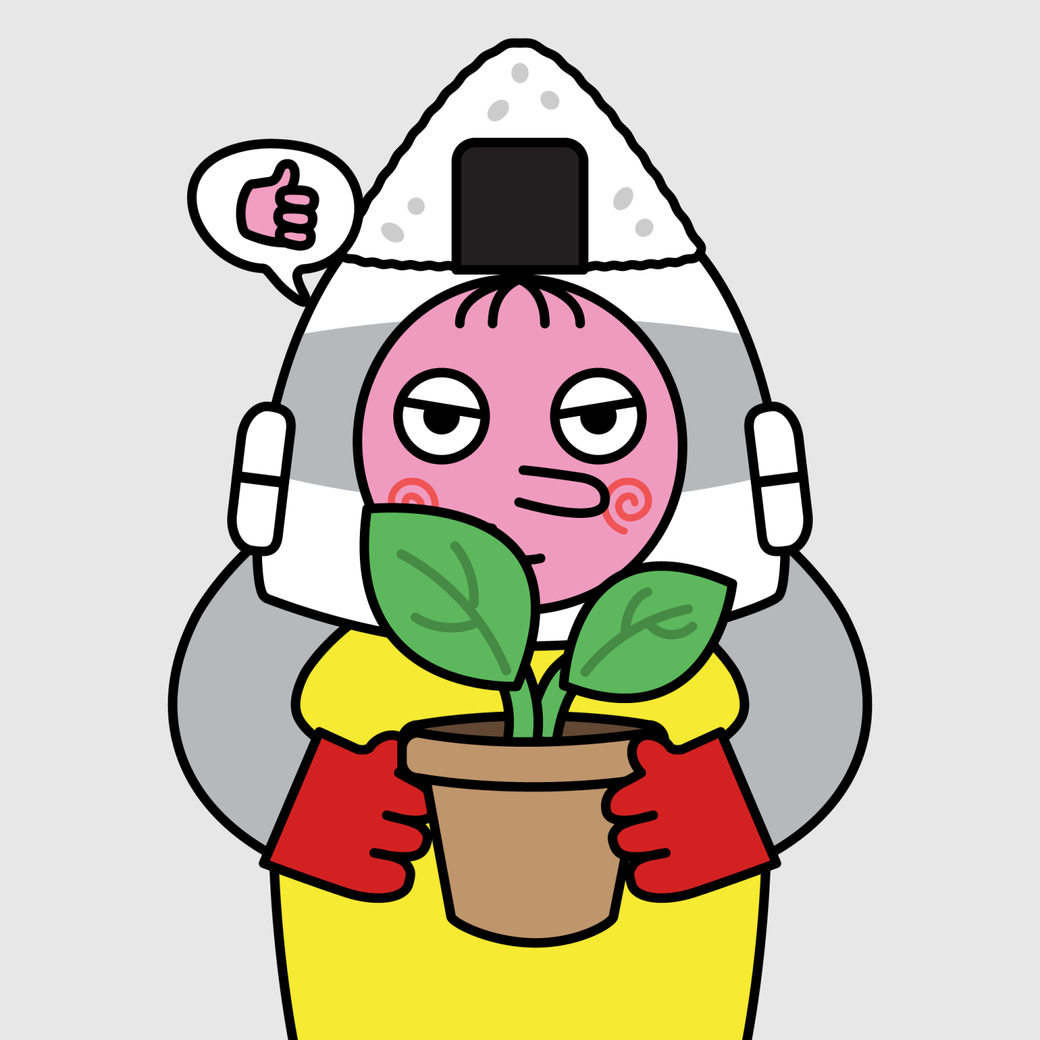 ArmsGrey31.22%BackgroundNeutral10.23%CheekSpiral16.18%DialogueThumbs Up11.09%EyesGrumpy5.74%Face ColourStrawberry46.38%HairSparse Fringe10.04%Head MiddleGrey Helmet1.88%Head TopSushi0.77%Left HandRed32.25%MouthSmirk19.13%NoseLong11.53%PropPlant0.81%Right HandRed32.25%ShirtPlain Yellow7.90%TribeAngel19.99%