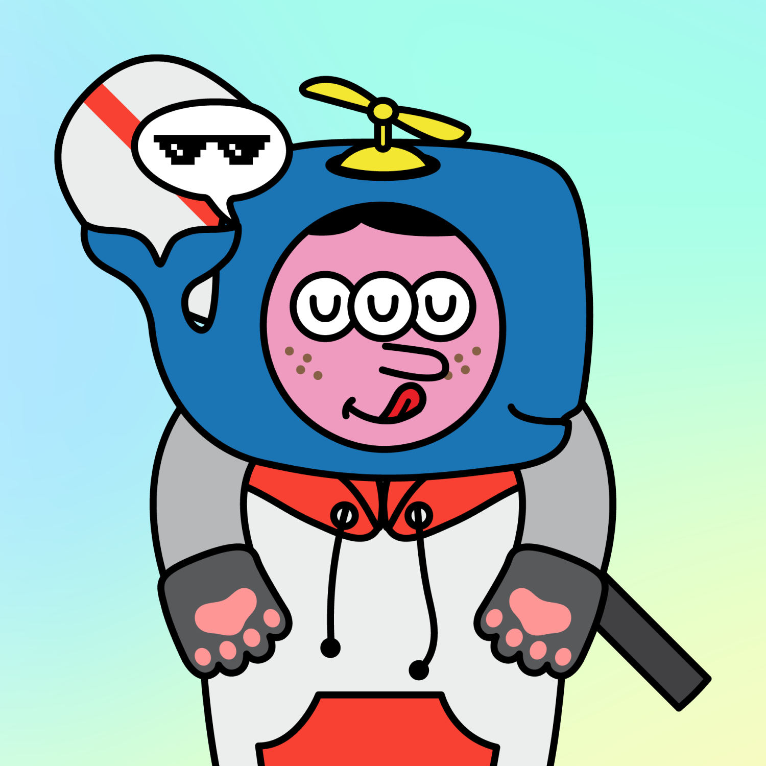 ArmsGrey31.22%BackgroundRainforest4.70%CheekFreckles3.67%DialogueThug3.31%EyesTriple Sleepy1.33%Face ColourStrawberry46.38%HairSide Fringe10.18%Head MiddleBlue Sperm Whale0.34%Head TopDragonfly0.20%Left HandGrey Paw1.62%MouthYummy1.92%NoseLong11.53%Right HandGrey Paw1.62%ShirtRed Hoodie1.22%Special ToolWhite Paddle0.35%TribeNeo-Capitalist20.02%