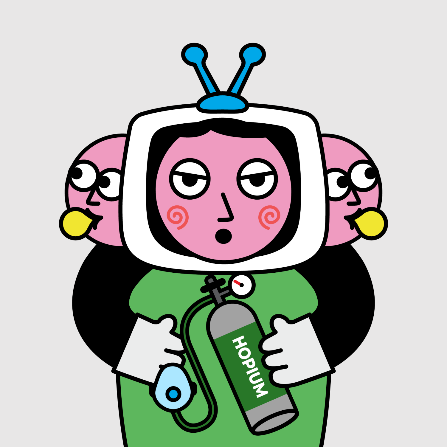 ArmsBlack33.28%BackgroundNeutral10.23%CheekSpiral16.18%EyesGrumpy5.74%Face ColourStrawberry46.38%HairSide Fringe10.18%Head MiddleChilled1.74%Head TopBlue Antenna1.72%Left HandWhite30.00%MouthPouty10.05%NoseSharp23.13%PropHopium Canister0.69%Right HandWhite30.00%ShirtPlain Green9.09%TribeConnector20.00%