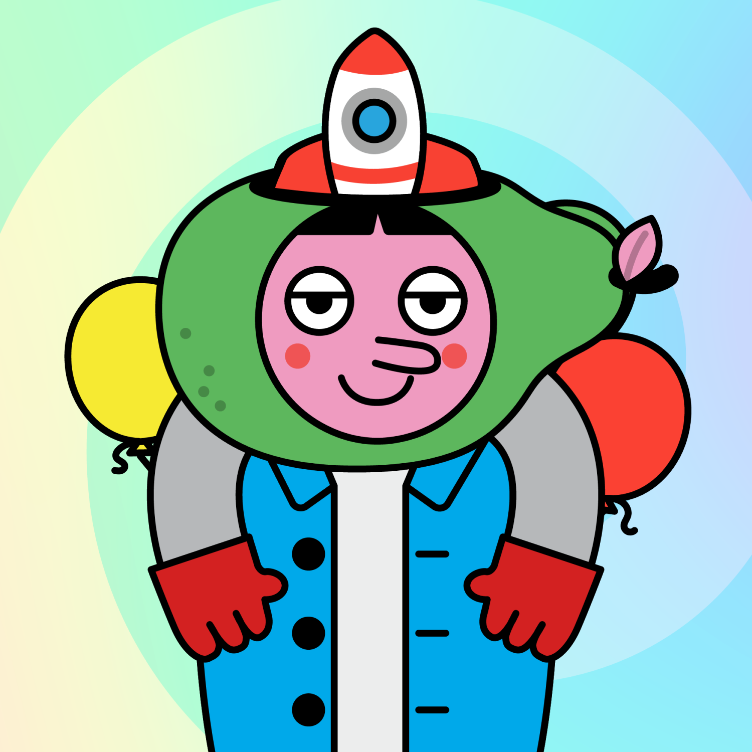 ArmsGrey31.22%BackgroundOcean3.29%CheekRosy23.73%EyesJudgemental4.78%Face ColourStrawberry46.38%HairThick Fringe9.57%Head MiddleGreen Pear0.30%Head TopRocket1.11%Left HandRed32.25%MouthBig Smile19.64%NoseLong11.53%Right HandRed32.25%ShirtBlue Shirt0.96%Special ToolSome Balloons0.64%TribeDreamer19.99%
