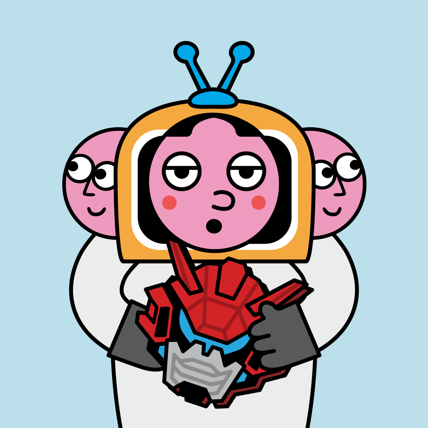 ArmsWhite33.38%BackgroundSky13.97%CheekRosy23.73%EyesJudgemental4.78%Face ColourStrawberry46.38%HairCentre Parting10.07%Head MiddleContent1.07%Head TopBlue Antenna1.72%Left HandGrey28.85%MouthPouty10.05%NoseButton10.78%PropPhantom Galaxies Helmet0.34%Right HandGrey28.85%ShirtPlain White6.92%TribeConnector20.00%