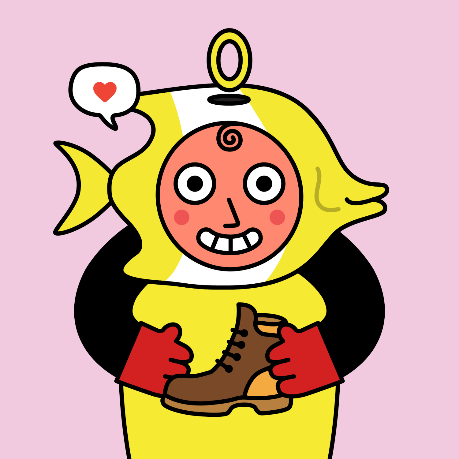 ArmsBlack33.28%BackgroundWarm4.70%CheekRosy23.73%DialogueLove9.06%EyesTwo14.58%Face ColourOrange22.69%HairSpiral Fringe9.51%Head MiddleYellow Butterflyfish0.47%Head TopCoin2.66%Left HandRed32.25%MouthTeethy10.18%NoseSharp23.13%PropBrown Boot0.71%Right HandRed32.25%ShirtPlain Yellow7.90%TribeNeo-Capitalist20.02%