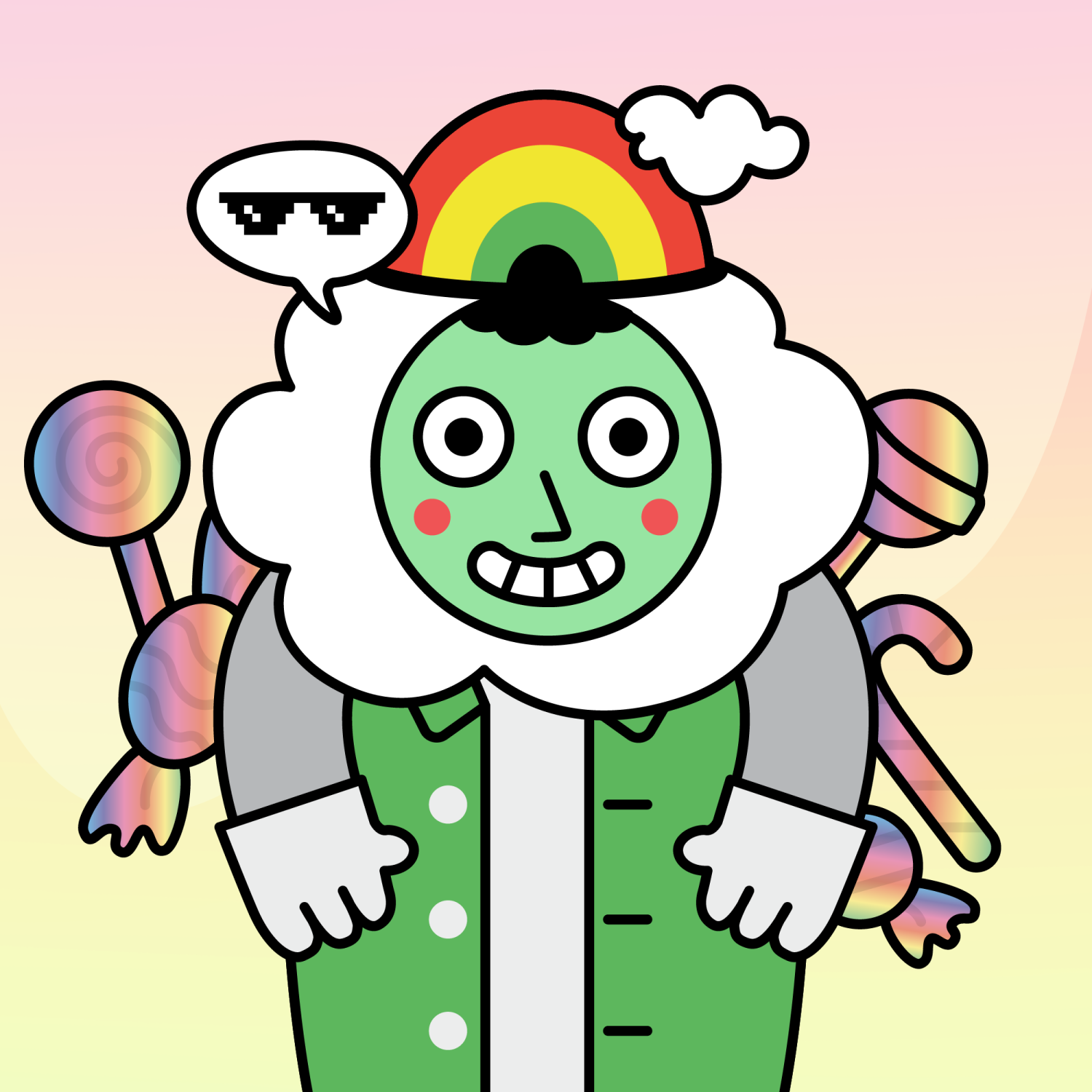 ArmsGrey31.22%BackgroundDawn3.29%CheekRosy23.73%DialogueThug3.31%EyesTwo14.58%Face ColourAlien3.81%HairCloud Fringe9.72%Head MiddleWhite Cloud1.70%Head TopRainbow0.79%Left HandWhite30.00%MouthTeethy10.18%NoseSharp23.13%Right HandWhite30.00%ShirtGreen Shirt1.34%Special ToolTrippy Candy0.66%TribeDreamer19.99%