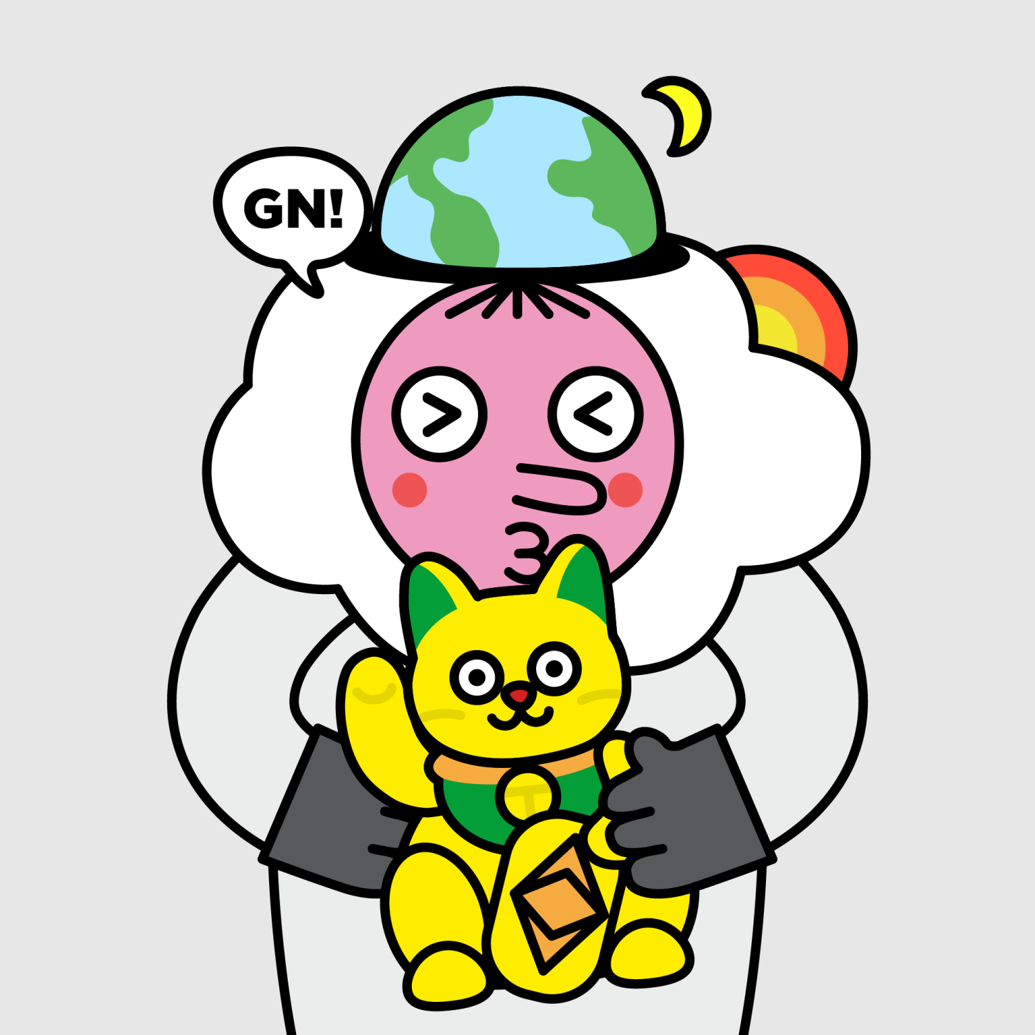 ArmsWhite33.38%BackgroundNeutral10.23%CheekRosy23.73%DialogueGN!10.28%EyesScrunched5.58%Face ColourStrawberry46.38%HairStraight Fringe9.68%Head MiddleRainbow Cloud1.01%Head TopEarth1.34%Left HandGrey28.85%MouthO11.24%NoseLong11.53%PropGold Neko0.66%Right HandGrey28.85%ShirtPlain White6.92%TribeDreamer19.99%