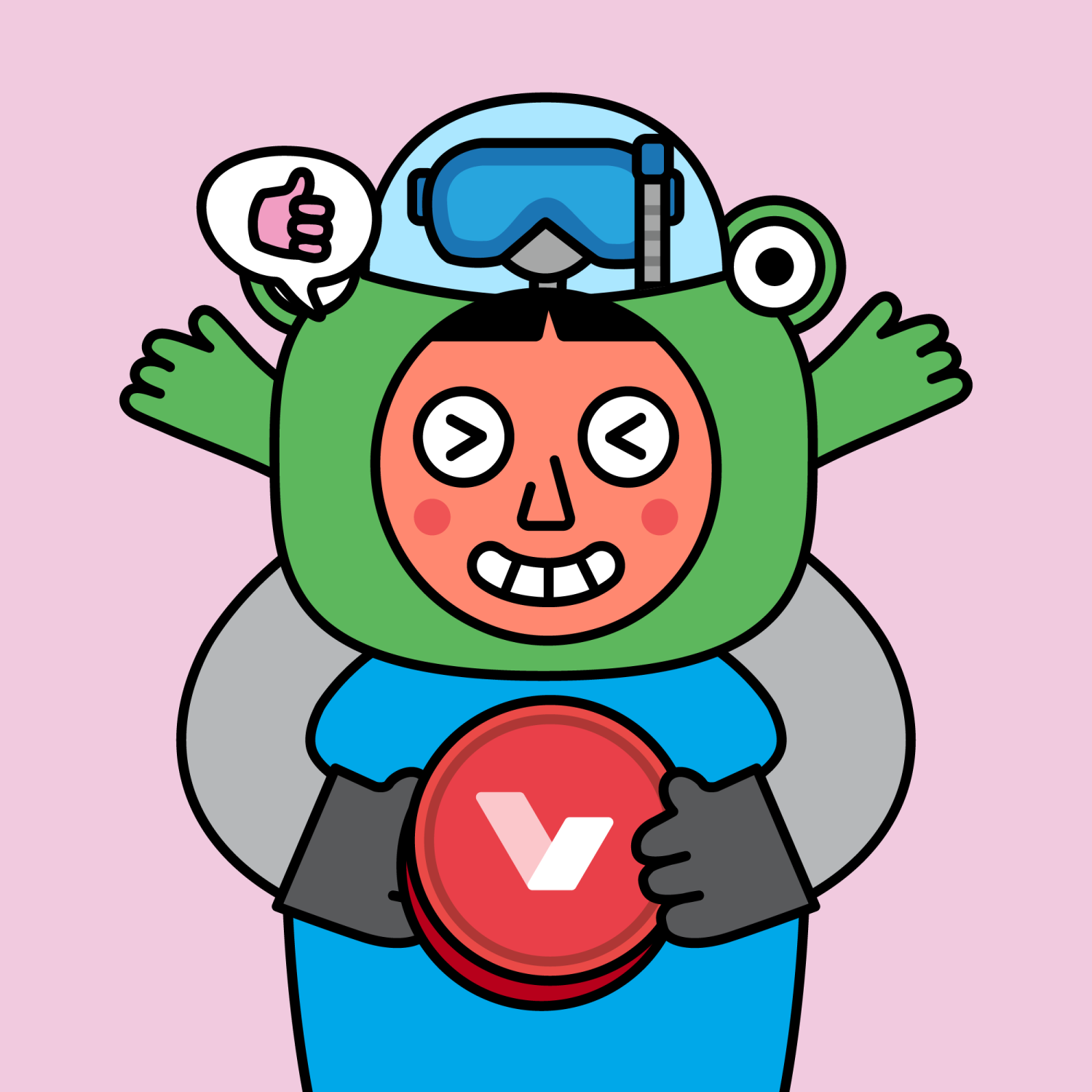 ArmsGrey31.22%BackgroundWarm4.70%CheekRosy23.73%DialogueThumbs Up11.09%EyesScrunched5.58%Face ColourOrange22.69%HairThick Fringe9.57%Head MiddleFroggie0.80%Head TopScuba2.09%Left HandGrey28.85%MouthTeethy10.18%NoseTriangle21.33%PropLympo0.75%Right HandGrey28.85%ShirtPlain Blue6.31%TribeBuilder19.99%