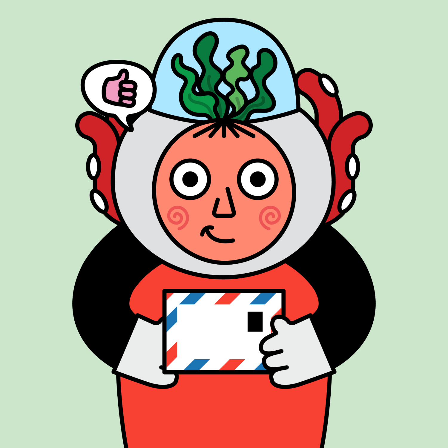 ArmsBlack33.28%BackgroundNature11.30%CheekSpiral16.18%DialogueThumbs Up11.09%EyesTwo14.58%Face ColourOrange22.69%HairStraight Fringe9.68%Head MiddleTentacles1.88%Head TopSeaweed1.24%Left HandWhite30.00%MouthSmirk19.13%NoseTriangle21.33%PropPostcard0.57%Right HandWhite30.00%ShirtPlain Red7.34%TribeBuilder19.99%
