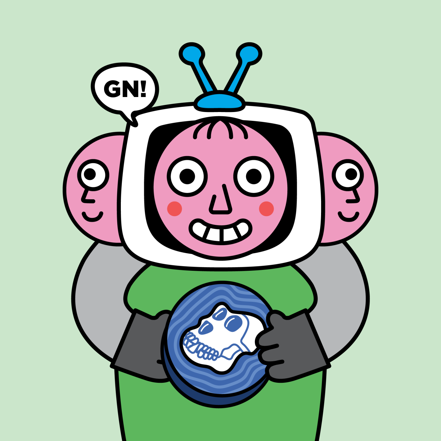 ArmsGrey31.22%BackgroundNature11.30%CheekRosy23.73%DialogueGN!10.28%EyesTwo14.58%Face ColourStrawberry46.38%HairSparse Fringe10.04%Head MiddleFocused1.80%Head TopBlue Antenna1.72%Left HandGrey28.85%MouthTeethy10.18%NoseTriangle21.33%PropApeCoin0.45%Right HandGrey28.85%ShirtPlain Green9.09%TribeConnector20.00%