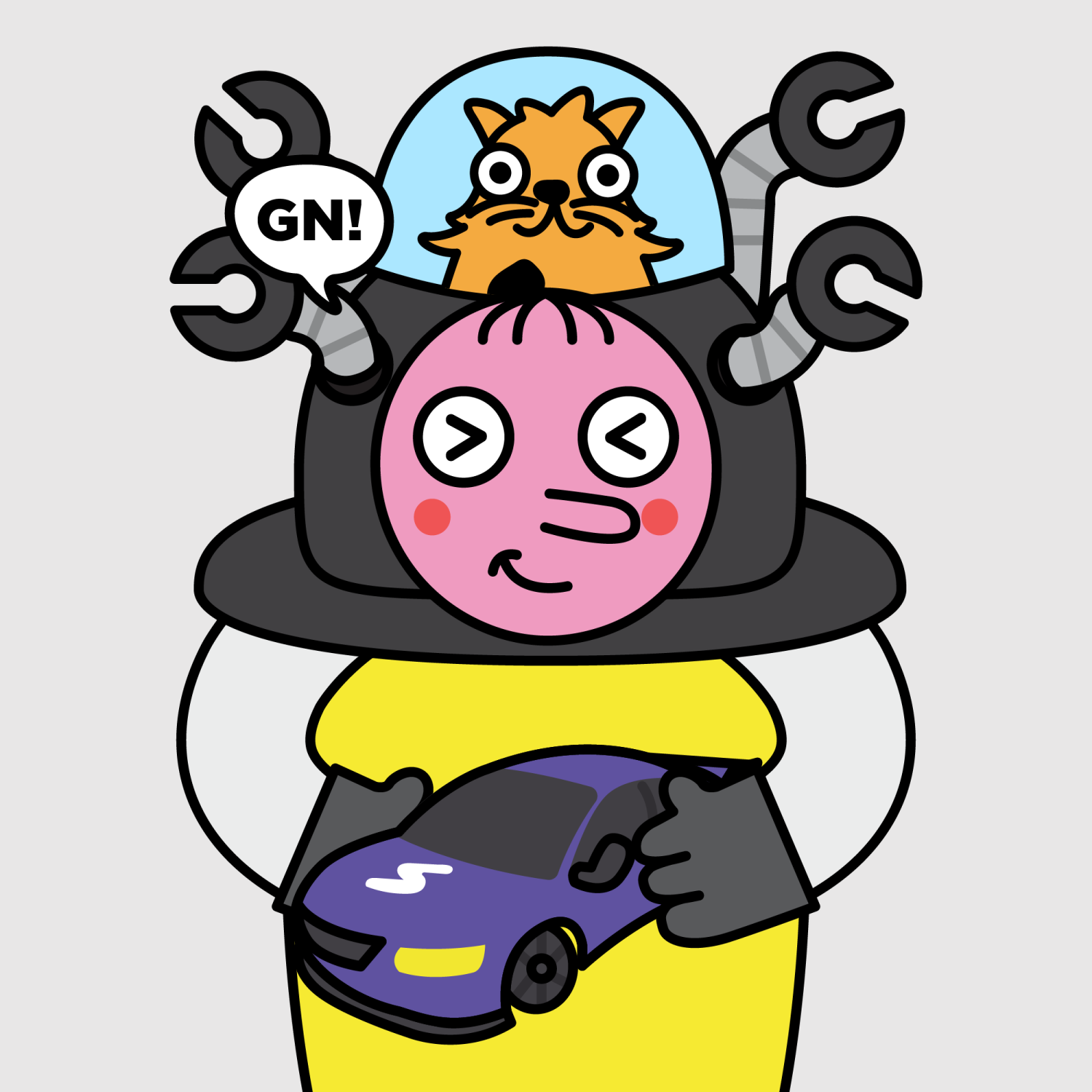 ArmsWhite33.38%BackgroundNeutral10.23%CheekRosy23.73%DialogueGN!10.28%EyesScrunched5.58%Face ColourStrawberry46.38%HairSparse Fringe10.04%Head MiddleDark Quad Bot0.62%Head TopCryptoKitties1.00%Left HandGrey28.85%MouthSmirk19.13%NoseLong11.53%PropREVV Toy0.64%Right HandGrey28.85%ShirtPlain Yellow7.90%TribeBuilder19.99%
