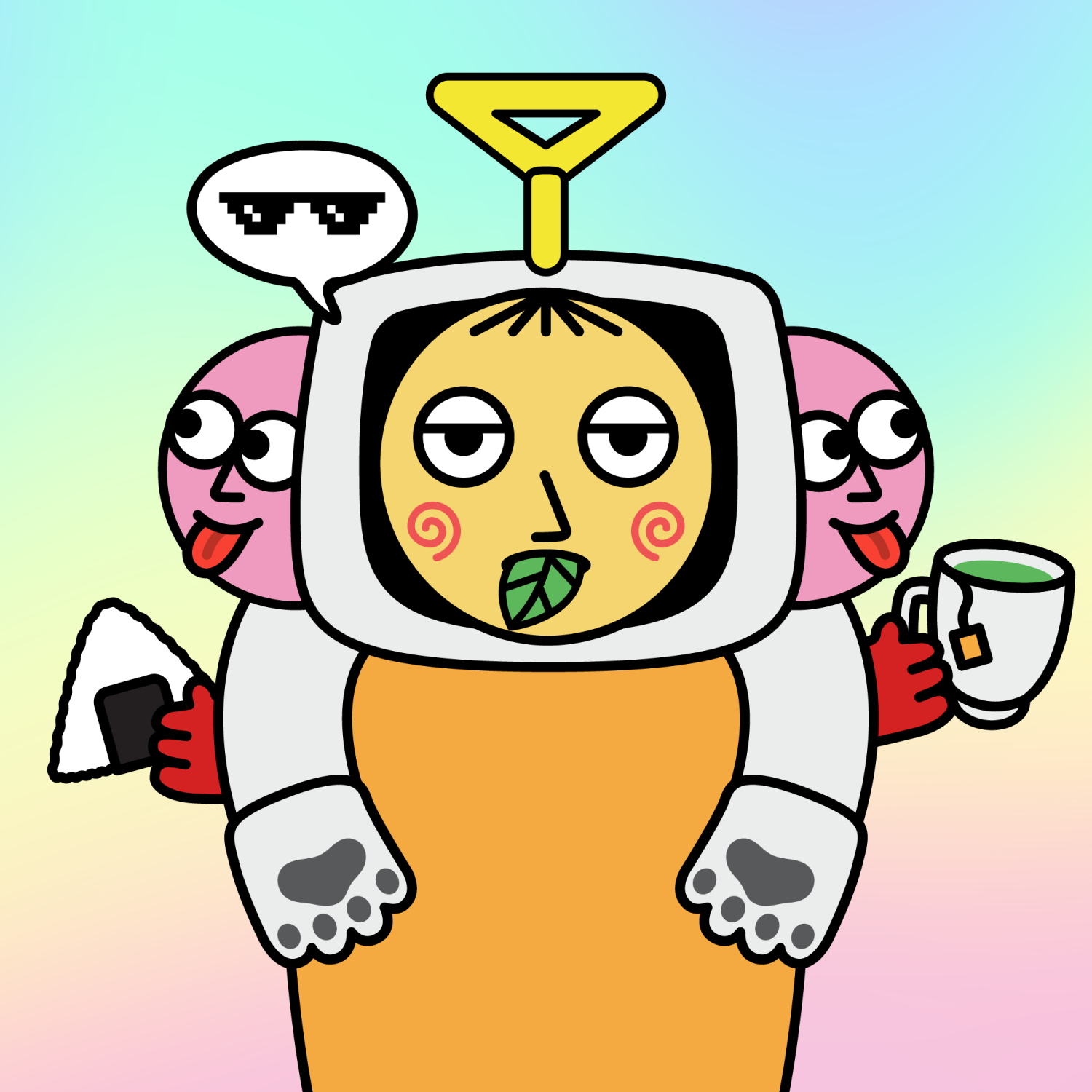 ArmsWhite33.38%BackgroundBeach3.75%CheekSpiral16.18%DialogueThug3.31%EyesJudgemental4.78%Face ColourLemon23.14%HairStraight Fringe9.68%Head MiddleCheeky1.81%Head TopIlluminati1.04%Left HandWhite Paw1.74%MouthLeaf2.01%NoseSharp23.13%Right HandWhite Paw1.74%ShirtPlain Orange7.35%Special ToolGreen Tea0.60%TribeConnector20.00%