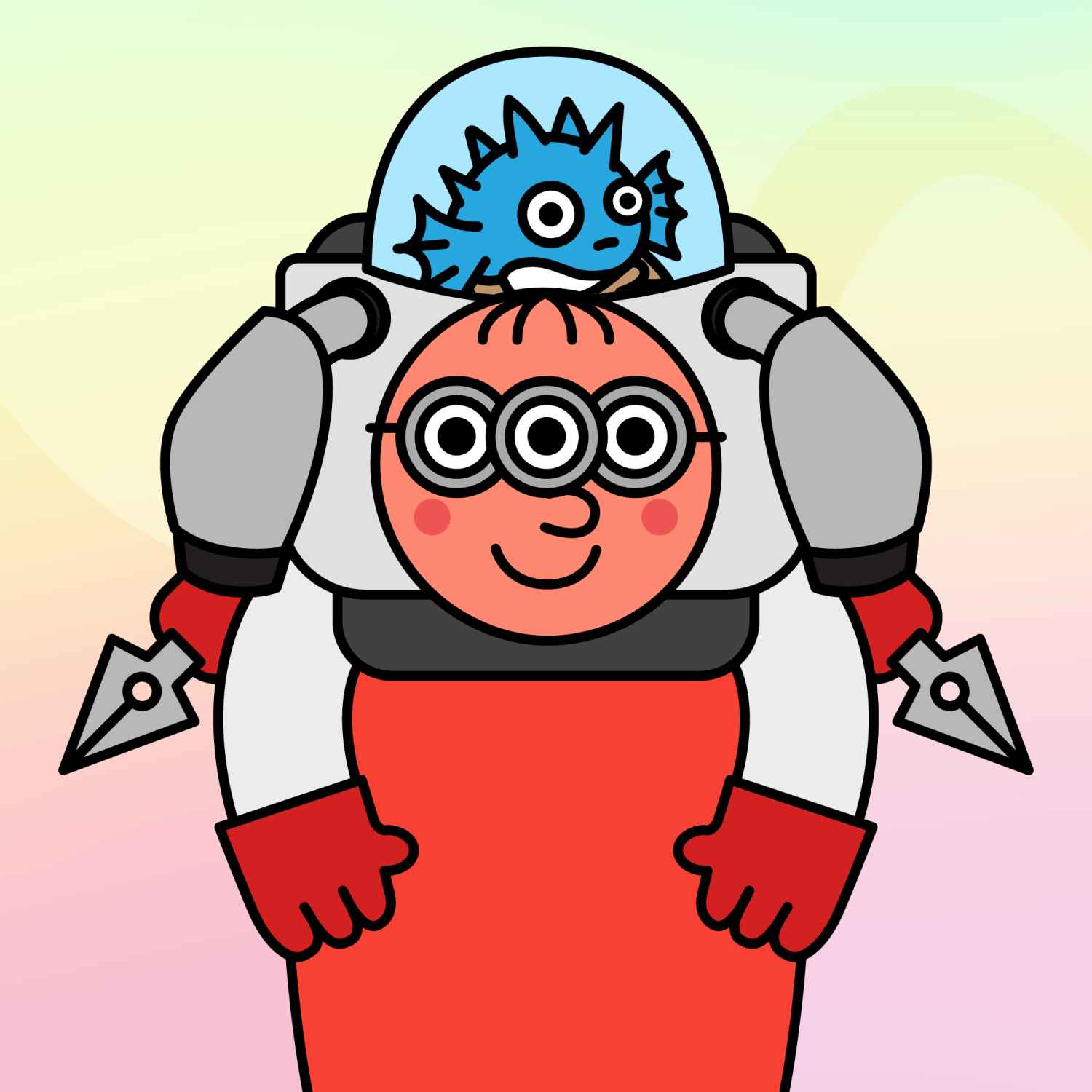 ArmsWhite33.38%BackgroundDusk3.29%CheekRosy23.73%EyesTriple Goggles1.40%Face ColourOrange22.69%HairSparse Fringe10.04%Head MiddleMetal Device1.62%Head TopBlowfish1.02%Left HandRed32.25%MouthBig Smile19.64%NoseButton10.78%Right HandRed32.25%ShirtPlain Red7.34%Special ToolCompass1.22%TribeBuilder19.99%