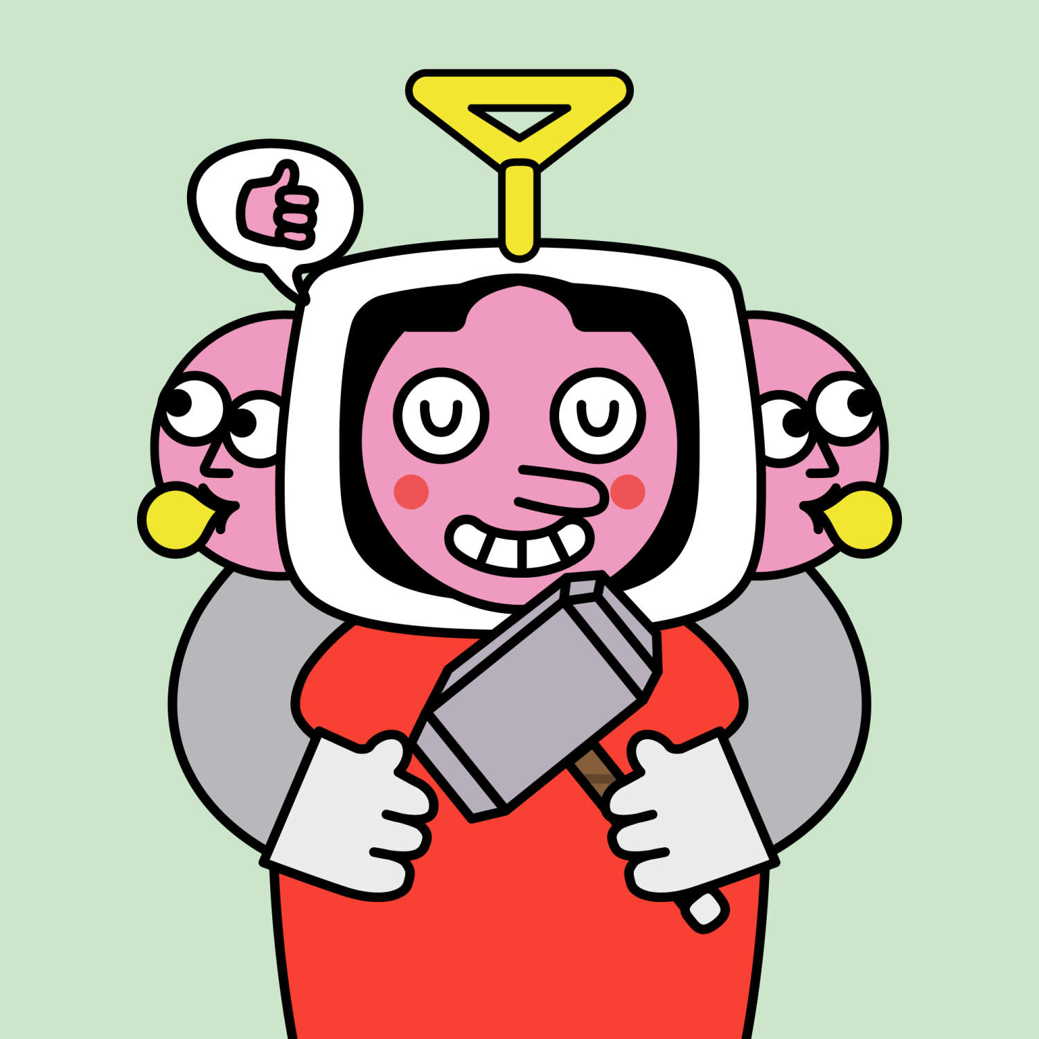 ArmsGrey31.22%BackgroundNature11.30%CheekRosy23.73%DialogueThumbs Up11.09%EyesSleepy5.84%Face ColourStrawberry46.38%HairCentre Parting10.07%Head MiddleChilled1.74%Head TopIlluminati1.04%Left HandWhite30.00%MouthTeethy10.18%NoseLong11.53%PropHammer0.68%Right HandWhite30.00%ShirtPlain Red7.34%TribeConnector20.00%