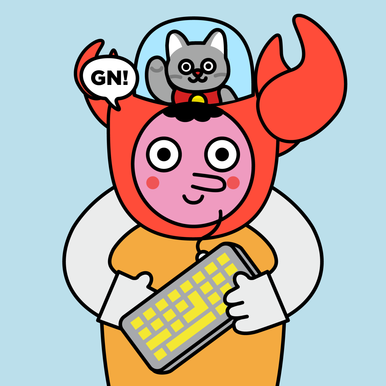 ArmsWhite33.38%BackgroundSky13.97%CheekRosy23.73%DialogueGN!10.28%EyesTwo14.58%Face ColourStrawberry46.38%HairCloud Fringe9.72%Head MiddleBig Red Claw0.99%Head TopGrey Neko0.74%Left HandWhite30.00%MouthSmile21.06%NoseLong11.53%PropKeyboard0.64%Right HandWhite30.00%ShirtPlain Orange7.35%TribeBuilder19.99%