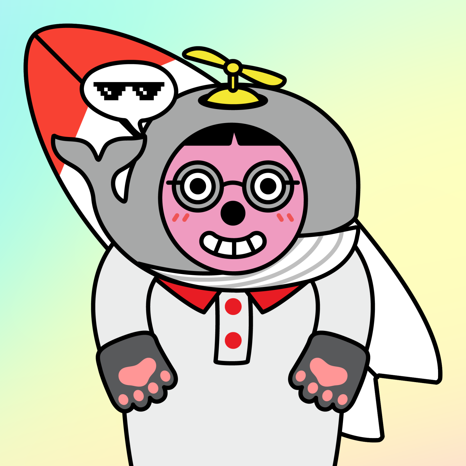 ArmsWhite33.38%BackgroundForest4.58%CheekBlush3.68%DialogueThug3.31%EyesGoggles1.85%Face ColourStrawberry46.38%HairThick Fringe9.57%Head MiddleGrey Blue Whale0.26%Head TopDragonfly0.20%Left HandGrey Paw1.62%MouthTeethy10.18%NoseBlack3.70%Right HandGrey Paw1.62%ShirtWhite Polo1.50%Special ToolRed Surfboard0.48%TribeNeo-Capitalist20.02%