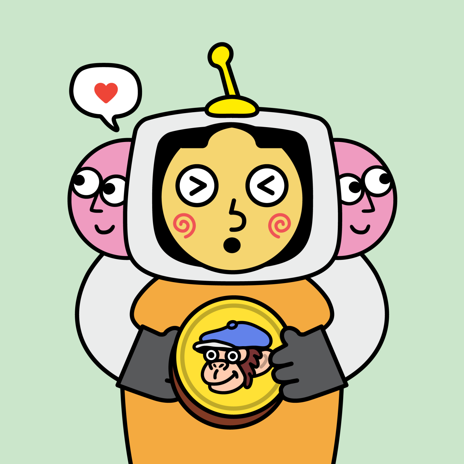 ArmsWhite33.38%BackgroundNature11.30%CheekSpiral16.18%DialogueLove9.06%EyesScrunched5.58%Face ColourLemon23.14%HairCentre Parting10.07%Head MiddleHappy1.88%Head TopYellow Signal1.70%Left HandGrey28.85%MouthPouty10.05%NoseRound21.67%PropGrease Monkey Games0.56%Right HandGrey28.85%ShirtPlain Orange7.35%TribeConnector20.00%