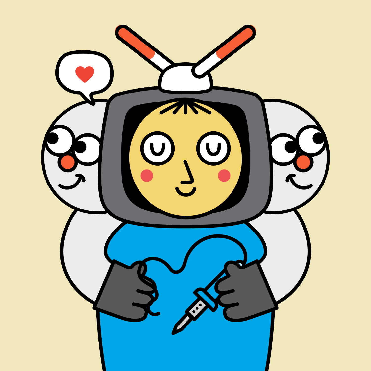 ArmsWhite33.38%BackgroundEarth11.50%CheekRosy23.73%DialogueLove9.06%EyesSleepy5.84%Face ColourLemon23.14%HairStraight Fringe9.68%Head MiddleClown1.13%Head TopTV Antenna1.01%Left HandGrey28.85%MouthSmile21.06%NoseSharp23.13%PropSoldering Iron0.59%Right HandGrey28.85%ShirtPlain Blue6.31%TribeConnector20.00%