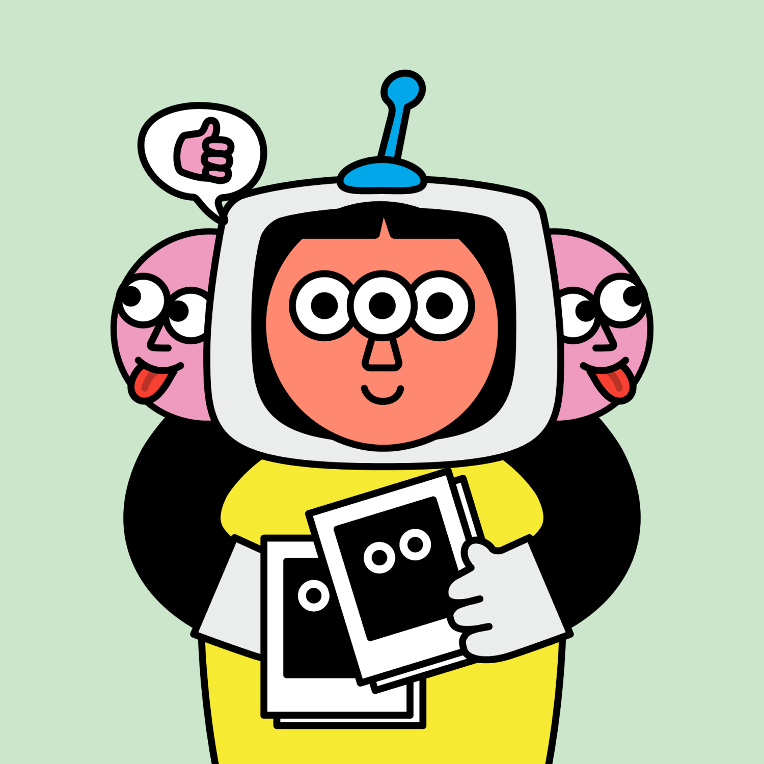 ArmsBlack33.28%BackgroundNature11.30%DialogueThumbs Up11.09%EyesThree15.53%Face ColourOrange22.69%HairThick Fringe9.57%Head MiddleCheeky1.81%Head TopBlue Signal1.73%Left HandWhite30.00%MouthSmile21.06%NoseTriangle21.33%PropPolaroids0.53%Right HandWhite30.00%ShirtPlain Yellow7.90%TribeConnector20.00%