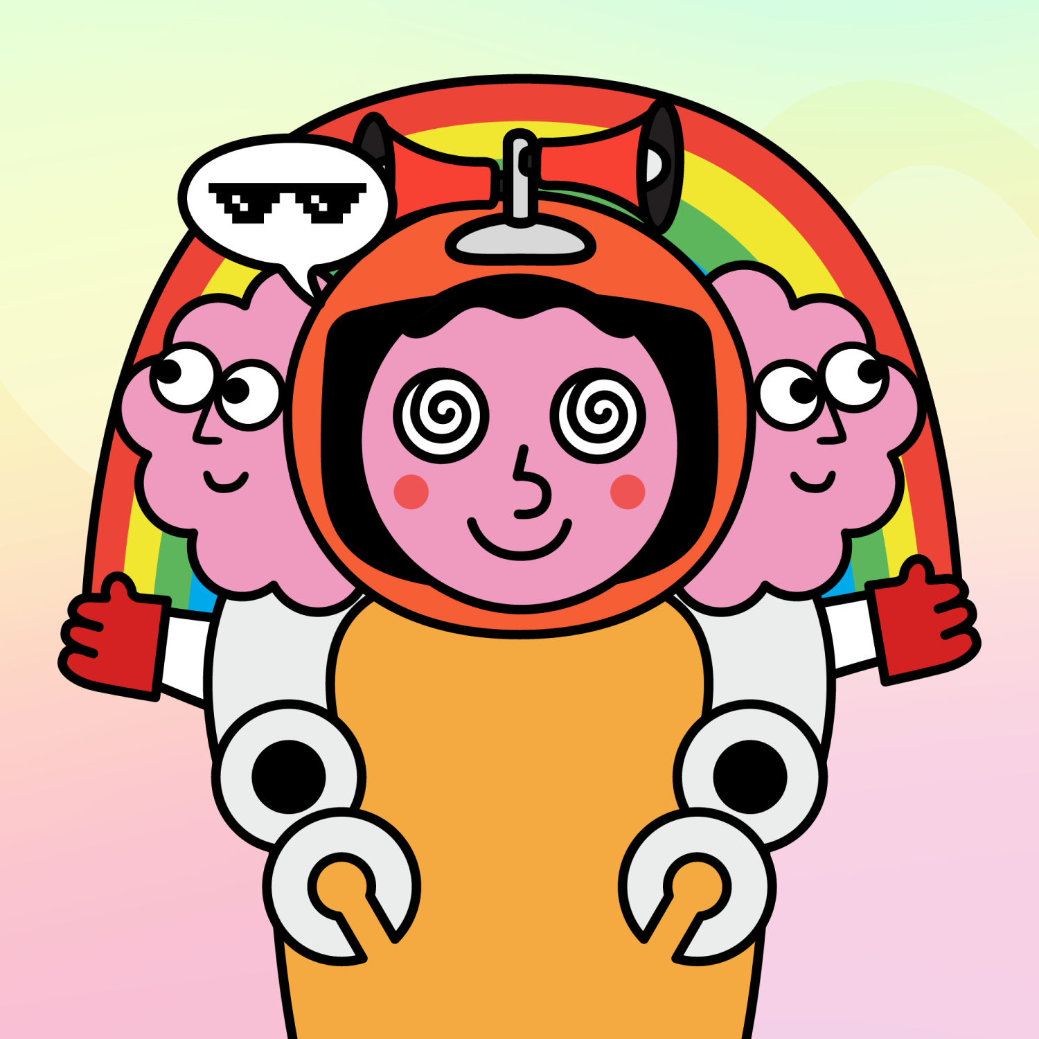 ArmsWhite33.38%BackgroundDusk3.29%CheekRosy23.73%DialogueThug3.31%EyesDizzy6.21%Face ColourStrawberry46.38%HairV-Shaped9.72%Head MiddleFluffy1.15%Head TopMegaphone0.83%Left HandRobot3.43%MouthBig Smile19.64%NoseRound21.67%Right HandRobot3.43%ShirtPlain Orange7.35%Special ToolSunrise Rainbow0.34%TribeConnector20.00%