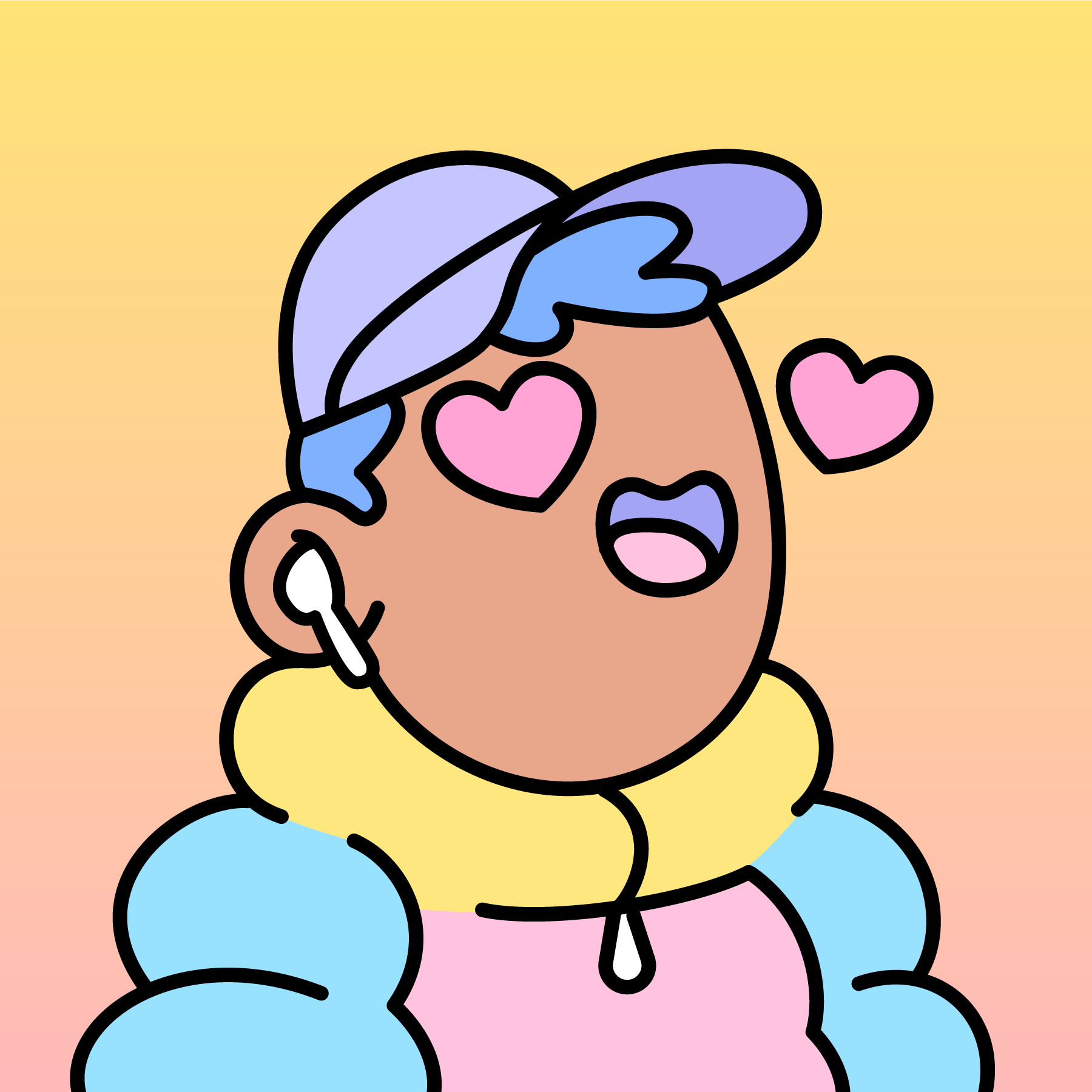 A community-driven collectibles project featuring art by Burnt Toast. Doodles come in a joyful range of colors, traits and sizes with a collection size of 10,000. Each Doodle allows its owner to vote for experiences and activations paid for by the Doodles Community Treasury. Burnt Toast is the working alias for Scott Martin, a Canadian–based illustrator, designer, animator and muralist.