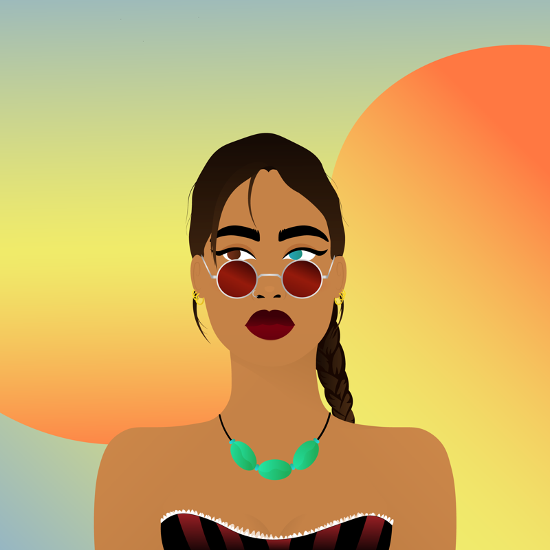 BackgroundOrange Yellow9.17%ClothesCabaret Corset5.35%EarringsTriple Rings8.23%EyesHeterochromia To The Right0.76%Face AccessoriesRed Round Sunglasses6.95%Facial FeaturesNose Piercing5.98%HairstyleBraided Ponytail5.61%Lips ColorBurgundy19.95%MouthStern17.33%NecklaceAmazonite Energy4.90%Skin ToneMedium Gold9.37%