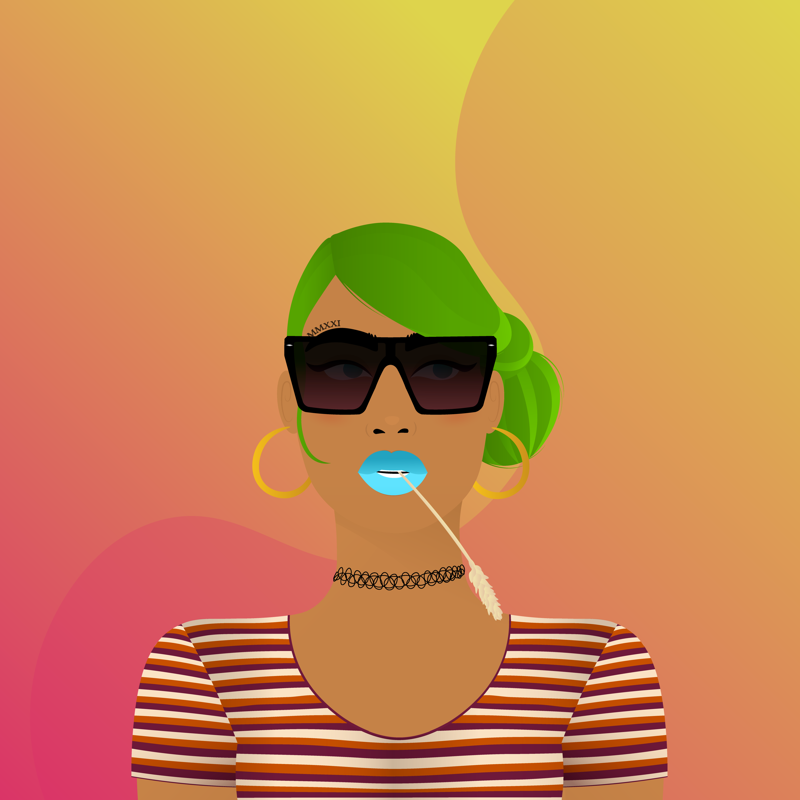 BackgroundYellow Pink8.96%ClothesStriped Tee5.67%EarringsClassic Hoops7.80%EyesBlue To The Left4.07%Face AccessoriesOversized Statement Sunglasses3.96%Facial FeaturesEyebrow Tattoo MMXXI3.03%HairstyleLucky Green4.17%Lips ColorFlashy Blue10.99%MouthCountryside9.27%NecklaceBack To The 90s7.06%Skin ToneMedium Gold9.37%