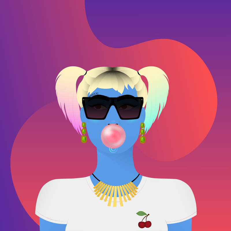 BackgroundPurple Pink9.05%ClothesCherry Tee5.90%EarringsQueen's Emeralds2.06%EyesBrown To The Right4.55%Face AccessoriesOversized Statement Sunglasses3.96%Facial FeaturesEyebrow Tattoo MMXXI3.03%HairstyleColorful1.86%Lips ColorParty Pink11.14%MouthBubble Gum4.04%NecklaceGolden Bib2.51%Skin ToneCool Blue4.86%