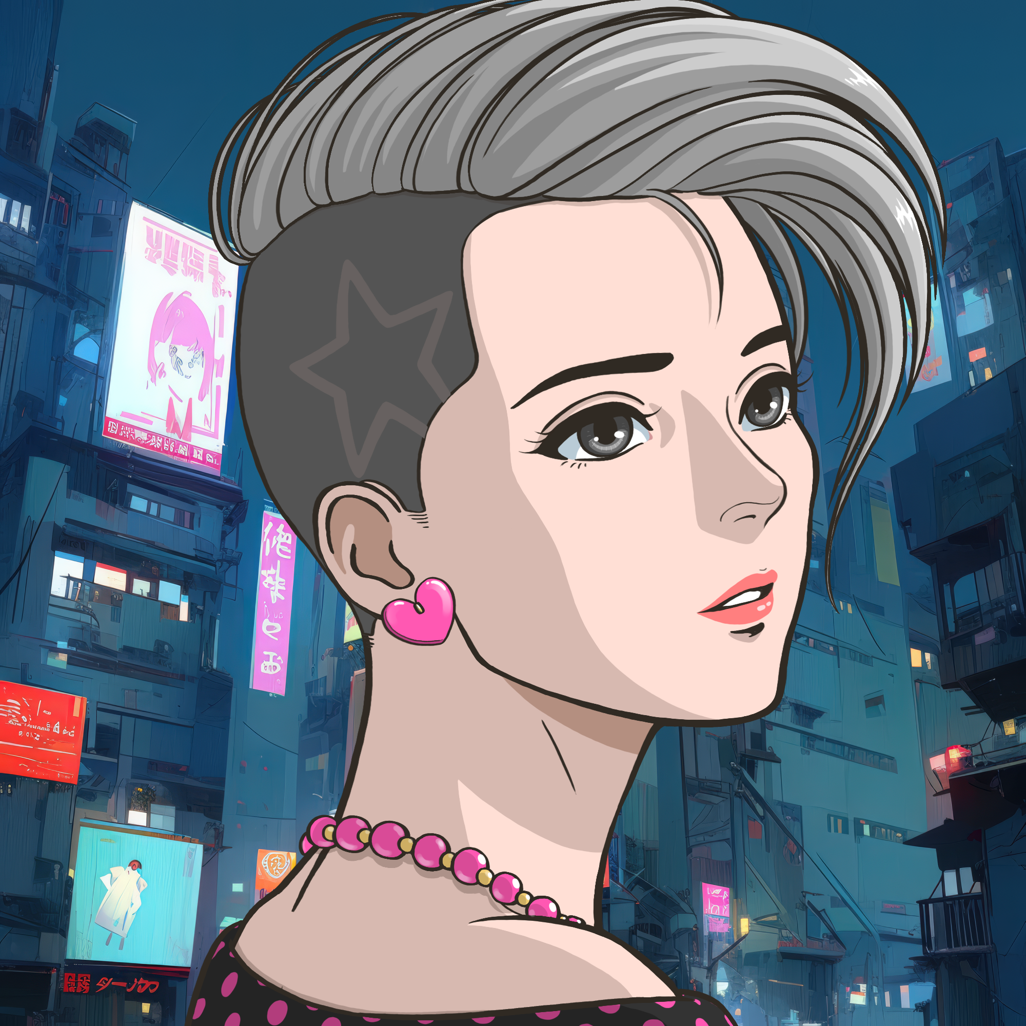AccessoryHeart Earrings3.91%Attire80s Sweater1.39%EnvironmentNeon City7.59%Eye ColourGrey10.53%GazeAffectionate4.93%GenerationYounger72.03%Hair ColourSilver9.76%Hair StyleSexy Mohawk1.17%NoseRounded32.03%SmileWhispering4.98%SpeciesHuman51.84%Token amount1136.040.10%Token release date17294220007.62%Tokens claimedfalse91.21%