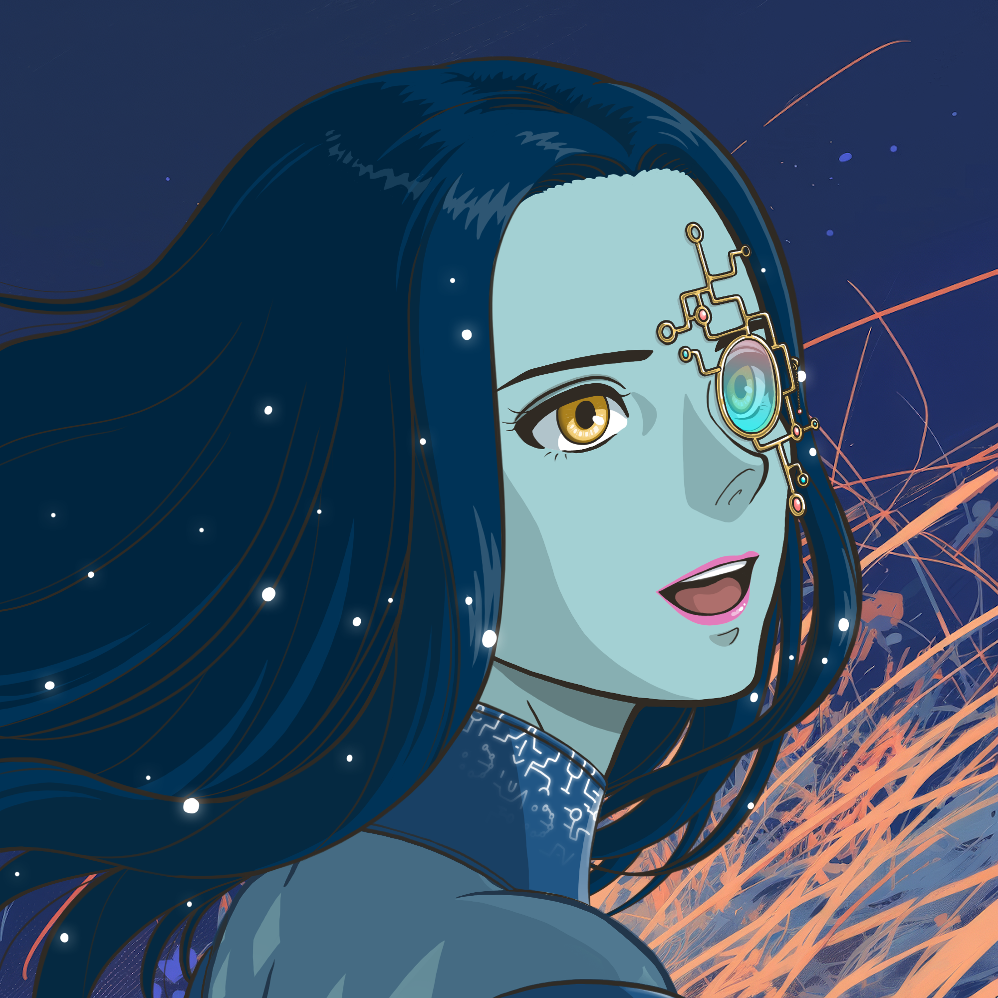 AccessoryMonocle0.85%AttireElegant Dress1.97%EnvironmentContemplation0.40%Eye ColourGilded8.51%GazeDetermined18.55%GenerationYounger72.02%Hair ColourGalaxy Blue5.05%Hair StyleLong2.07%NoseUpturned25.57%SmileInnocent3.78%SpeciesLuminan31.09%Token amount5952.880.02%Token release date173697505910.33%Tokens claimedfalse91.21%