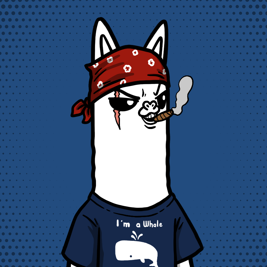 BackgroundNavy11.34%BodyWhite8.33%Class0419.55%ClothesI'm a Whale2.97%EyesScarred3.66%HeadRed Bandana2.15%MouthCigar3.07%