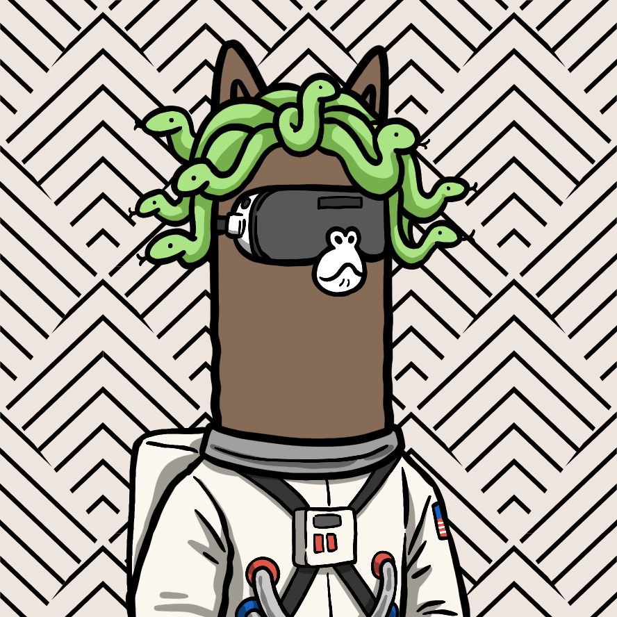 BackgroundGeometric12.22%BodyDark Fawn8.42%Class0219.55%ClothesAstronaut2.13%EyesVR3.66%HeadMedusa2.83%MouthMoody Frown4.46%
